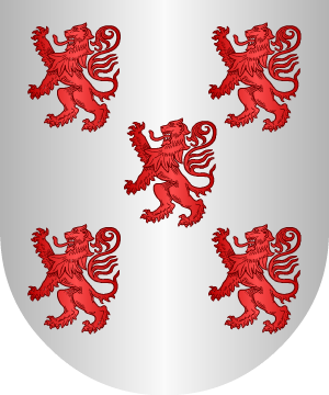 plata, con un ramo de oliva de sinople, en el pico. 8.- La rama de Aragón usaba: Escudo partido: 1º, en azur tres fajas de plata, ondeadas, y sobre ellas un arca de oro, surmontada de cinco estrellas del mismo metal, puestas en forma de arco, y 2º, en gules, tres fajas de oro. 9.- Los Arca de Portugal, tienen: Escudo cuartelado: 1º y 4º, en campo de oro, una faja de gules, y 2º y 3º, de nueve puntos equipolados, de gules y oro. 10.- Los Arcas de la Misericordia: En campo de azur, un arca con un niño saliendo de ella, de oro. 11.- Algunos Arca: En campo de azur, un guerrero, de plata, haciendo frente a tres moros, de su color natural. Información de estos linajes complementada por cortesía de blasonari.net |