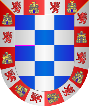 traen: Escudo cuartelado: 1º, de sinople, con dos columnas, de plata, sobre
