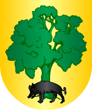 un cirio de plata ardiendo. 32.- Otros Bernales: En campo de plata, una cruz, de sable. 33.- Los Bernáldez, de Mansilla (La Rioja) y radicados en Torrijos (Toledo), traen: En campo de oro, dos calderas, de sable, puestas en palo. 34.- Los Bernáldez, radicados en Venezuela, traen: En campo de plata, un salmón, saltante, de azur. Bordura de gules, con ocho estrellas de seis puntas, de oro. 35.- Los Vernal, radicados en Madrid, según Vicente de Cadenas, traen: Escudo contrapalado de oro y gules. 36.- Los Bernat, de Barcelona, usan: Escudo bandado de cuatro piezas de plata y cuatro de gules. 37.- Otros Bernat: Un pez sobre ondas. 38.- Los apellidados Bernal de los Ríos, radicados en Madrid, usan: Escudo partido: 1º, en campo de gules, y 2º, en campo de plata, trece roeles de azur, puestos como orla. 39.- Los Bernales de Navarra, según Rietstap: En campo de gules, una vela de plata, encendida de gules, cayendo la cera por el lado siniestro. Información de estos linajes complementada por cortesía de blasonari.net |