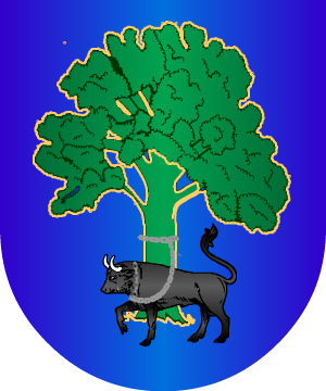un cirio de plata ardiendo. 32.- Otros Bernales: En campo de plata, una cruz, de sable. 33.- Los Bernáldez, de Mansilla (La Rioja) y radicados en Torrijos (Toledo), traen: En campo de oro, dos calderas, de sable, puestas en palo. 34.- Los Bernáldez, radicados en Venezuela, traen: En campo de plata, un salmón, saltante, de azur. Bordura de gules, con ocho estrellas de seis puntas, de oro. 35.- Los Vernal, radicados en Madrid, según Vicente de Cadenas, traen: Escudo contrapalado de oro y gules. 36.- Los Bernat, de Barcelona, usan: Escudo bandado de cuatro piezas de plata y cuatro de gules. 37.- Otros Bernat: Un pez sobre ondas. 38.- Los apellidados Bernal de los Ríos, radicados en Madrid, usan: Escudo partido: 1º, en campo de gules, y 2º, en campo de plata, trece roeles de azur, puestos como orla. 39.- Los Bernales de Navarra, según Rietstap: En campo de gules, una vela de plata, encendida de gules, cayendo la cera por el lado siniestro. Información de estos linajes complementada por cortesía de blasonari.net |