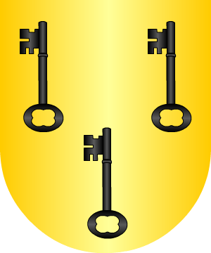 Escudo mantelado: 1º, en campo de gules, tres palos de oro; 2º, en