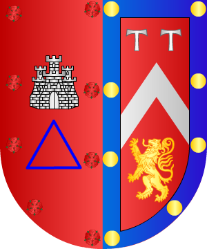 buey pasante, de su color natural. 2.- Francisco Piferrer señala que es un toro es vez de un buey. En campo de plata, un toro pasante, de su color natural. 3.- Los de Soria, traen: En plata, una cruz floreteada, de gules. 4.- Otros traen: En campo de plata, dos encinas, de sinople, en faja, frutadas y en la terrasa dos montones de bellotas, de oro. 5.- La casa de Sallent de Gállego y sus ramas de Tauste, Magallón, Ainzón y Zaragoza, traen: Escudo cuartelado de quince carteles, ocho de oro, y siete de plata con dos ordenes de veros en punta, de azur. 6.- Otros Blasco, según Vicente de Cadenas, traen: Escudo cuartelado: 1º, y 4º, en azur, una bandera de plata, opuesta en cada cuartel, cuyas astas se cruzan en el centro del escudo, sostenidas por una mano de carnación, y 2º y 3º, en plata, un dragón de azur; bordura de oro. 7.- La casa de Sallent y sus ramas de Alquézar, Angüés y Loporzano en Aragón, traen: Escudo cuartelado: 1º y 4º, de azur, 2º y 3º, de plata, un grifo de oro, sobre el centro del escudo y sobre todo, mano sosteniendo dos banderas opuestas de gules; bordura de oro. 8.- Otros de la casa de Sallent y sus ramas de Alquézar, Angüés y Loporzano en Aragón, traen: Escudo cuartelado: 1º y 4º, de azur, 2º y 3º, de plata, un grifo de oro, sobre el centro del escudo y sobre todo, mano sosteniendo dos banderas opuestas de plata; bordura de oro. 9.- Los Blasco de Panticosa, en la provincia de Huesca, traen: En campo de azur, una mano sosteniendo dos banderas opuestas de gules y a cada lado un grifo, de oro. 10.- Los de México, traen: En campo de oro, un árbol de sinople, y a su lado un jabalí, de sable, al que dos perros cogen de las orejas. 11.- Los de Azuara (Zaragoza) y su rama en Zaragoza usan: En campo de gules, una banda de oro y una cruz de San Antón. 12.- Los de Ávila, según Juan José Vilar y Psayla, traen: En campo de oro, seis roeles de azur, puestos en dos palos. 13.- Los de Avila, según Vicente de Cadenas, traen: En campo de plata, una banda, de gules, cargada de una espada, de oro. 14.- Los radicados en Sevilla y extendidos a Cuba, según Vicente de Cadenas, traen: En campo de oro, dos panelas, de gules, una en jefe y otra en el centro del escudo. 15.- Los Blasco de Tauste, según Vicente de Cadenas, traen: En campo de plata, cuatro bandas, de azur. 16.- Los de Uncastillo, traen: Campo de gules, pleno. 17.- Otros Blasco, según Agustín de Loaysa, traen: Escudo partido: 1º, en campo de azur, un castillo de plata, y 2º, en campo de plata, dos bastones de gules. Complemento de información de estos linajes por cortesía de blasonari.net |