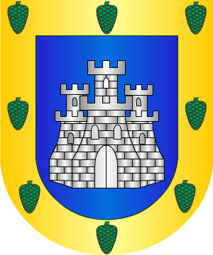 oro. Estas mismas armas usaban los de Ubeda. 13.- Otros traen: Escudo mantelado: 1º, en campo de azur, tres flores de lis de oro, bien ordenadas; 2º, en campo de oro, dos palos de gules, y 3º, o mantel, de plata con una boca de cueva, saliendo de ella un dragón fiero de sinople echando llamas por la boca, y medio salido, sin la bordura. 14.- Los de Ubeda, según Bernardo de Estrada y Nava, traen: Escudo mantelado: 1º, en campo de azur, tres flores de lis de oro, mal ordenadas; 2º, en campo de oro, cuatro bastones de gules, y 3º, en campo de sinople, un dragón de oro saliendo de una cueva oscura. 15.- Los de Alcorisa (Teruel) usan: Escudo mantelado: 1º y 2º, en campo de oro, dos palos de gules, y 3º, o manteladura, de azur, un dragón de oro, linguado de gules. Bordura de gules con ocho sotueres de oro. 16.- Los Duques de Alburquerque usan: En campo de plata, y en el medio de él una lisonja de gules cargada de un castillo de oro; y en los cuatro ángulos, leones rampantes de púrpura. 17.- Otros usan: En campo de plata, y en el medio de él una lisonja de gules cargada de un castillo de oro; y en los cuatro ángulos, leones rampantes de gules. 18.- En la casa llamada del Patriarca, calle del campo o Sopuente, de la villa de Selaya, del valle de Carriedo (Cantabria), constan: Escudo mantelado: 1º, tres flores de lis, mal ordenadas; 2º, tres palos, y 3º, o manteladura, una cueva y un dragón que saca la cabeza por ella. 19.- En la calle de la Carrera, de Santillana del Mar, constan: Tres palos que apoyan en una ojiva o boca de cueva por la que asoma un dragón. 20.- En la torre llamada de Beltrán de la Cueva, del lugar de Queveda, del municipio de Santillana del Mar (Cantabria), constan: Un guerrero montado en su corcel, que introduce su lanza en la boca de un dragón, todo sobre ondas de agua, con una inscripción que dice "Cueva". 21.- A pedimento de Toribio Pérez de Bustamante, que era Señor de la Casa de Cueva en Queveda en 1649, se certifican las armas de esta casa por Juan Francisco de Hita, de esta forma: En campo de azur, una torre de oro, orpasada de gules sobre un risco al natural, y al pie de ella una gruta y a su puerta tres cabezas de moros con turbantes de plata y gules. 22.- Don Enrique IV de Castilla concedió a Beltrán de la Cueva, primer Duque de Alburquerque, primer Conde de Ledesma y de Huelma, las siguientes armas: Escudo cortado bajado: 1º, en campo de oro, cuatro palos, de gules, y 2º, en campo de sinople, una cueva, de sable, de la que sale un dragón, de oro, lampasado de gules. 23.- Otros añadieron una bordura de gules con ocho sotueres de oro. Complemento de información de estos linajes por cortesía de blasonari.net |