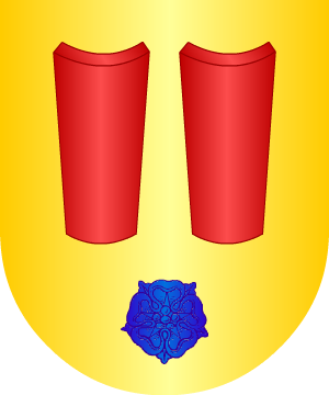 Linaje originario de Francia. Armas En campo de gules, ua banda de oro acompañada en lo alto de una corona de lo mismo, sobre un ramo de laurel también de oro, y en lo bajo, de una cruz del mismo metal. |