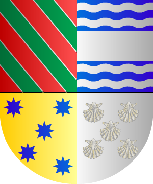 Asturiano, de Tapia de Casariego y Villanueva de Oscos. Partido: 1.º, en azur, un aspa, de oro, acompañada en cada hueco de una flor de lis, de plata; bordura de gules, con ocho crecientes ranversados, de plata. 2.º, en plata, dos pinos, de sinople, y entre ellos, un escudete, de azur, cargado de cinco estrellas, de plata, puestas en aspa, y las letras S y E en los cantones del jefe; la M y la Q en los flancos, y la S en la punta del escudo. (Ref.: CADENAS) |