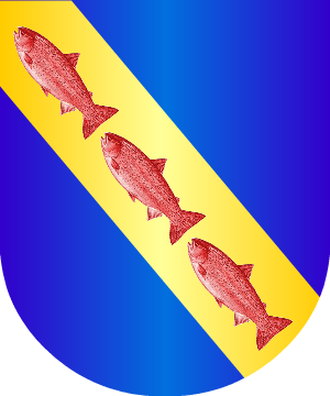 2.- Algunos modificaron los esmaltes pintando el campo de azur, la banda de oro y los peces de gules.