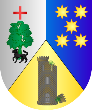 Apellido castellano, originario de la comarca de La Bureba (Burgos), de donde pasó a Vizcaya. Armas 1.- Escudo cortinado: 1º, en campo de plata, un árbol de sinople, surmontado de una cruz llana de gules, y un lobo de sable, pasante al pie del tronco; 2º, en campo de azur, cinco estrellas de oro, en sotuer, y 3º, o manteladura, de oro, con una torre de piedra ahumada y desmoronada, al natural. 2.- Juan Carlos de Guerra señala que el anterior escudo es mantelado. Información de estos linajes por cortesía de blasonari.net |