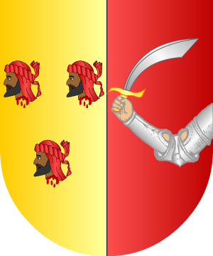 Apellido radicado en Santander y extendido a Bilbao y Francia. Armas 1.- En campo de plata, un árbol arrancado de sinople y, alzado a su tronco, un lobo de sable. 2.- Otros traen: En campo de plata, una cruz de Santiago de gules. 3.- Otros portan: En campo de plata, una piña de sinople. Bordura de gules con ocho aspas de oro. |