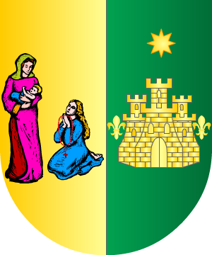 2.- Con frecuencia aparecen invertidos los esmaltes de los quince jaqueles, poniendo ocho de plata y siete de azur. 3.- Las mismas armas fueron también acrecentadas con una bordura jaquelada con las armas de Castilla y León; o sea: Un jaquel de gules con un castillo de oro, armas de Castilla, alternando con otro jaquel de plata con un león rampante de gules, armas de León. 4.- Fernán Pérez de Toledo, usó por armas un castillo al natural en campo de gules. 5.- Álvaro Ibáñez de Toledo, usó estas otras: En campo de oro, tres fajas de gules, y bordura jaquelada de plata y azur. 6.- Diego García de Toledo, Señor de Mejorada, casado con María García Gudiel, citado en el párrafo décimo de la rama troncal, trajo las siguientes: En campo de plata, seis palomas de azur puestas en dos palos. Que son las armas de los Palomeque, enlazados con los Toledo. 7.- Los de Toledo, según Francisco Fernández de Béthencourt, usan: En campo de gules, un castillo de plata. 8.- de la casa de la villa de Amézqueta, en Guipúzcoa, traían: Escudo partido: 1º, en campo de oro, una imagen de Nuestra Señora, teniendo al Niño Jesús en los brazos, y arrodillada a sus pies una persona, con un rosario en la mano, y 2º, en campo de sinople, un castillo de oro, surmontado de una estrella y acostado de dos flores de lis, todo de oro. 9.- Los de Amezqueta, Guipúzcoa y Vizcaya, según Juan Carlos de Guerra, usan: En campo de sinople, un castillo de plata. 10.- En el expediente del Guardia Marina Luis de Toledo y Licht, natural de Sevilla, constan: En sinople, un castillo de plata, y al pie un carro de guerra o arma semejante. 11.- Otros: En campo de sinople, un castillo de oro. 12.- Otros: En campo de gules, una torre, de oro y asomado a su puerta un guerrero, de plata, con una lanza en su diestra. 13.- Los Álvarez de Toledo, de Asturias, usan: En campo de oro, un castillo de plata. 14.- Los Alvarez de Toledo, radicados en Asturias, según Vicente de Cadenas, usan: En campo de oro, un castillo, al natural, aclarado de sable. 15.- Los apellidados Toledo-Pimentel usan: Escudo partido: 1º, quince jaqueles de azur y plata, que es Toledo, y 2º, cuartelado: primero y cuarto, en campo de oro, tres fajas de gules, y segundo y tercero, en campo de sinople, cinco veneras de plata, puestas en sotuer, que es Pimentel. 16.- Los Toledo de La Horcajada (Ávila) usan: Escudo jaquelado de ocho jaqueles de plata y siete de azur, y alrededor catorce banderas. Información de estos linajes mpliamente complementada por cortesía de blasonari.net |