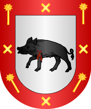 El actual Cronista y Rey de Armas Vicente de Cadenas señala que este apellido es originario de Navarra. Armas En campo de plata, un jabalí, de sable, herido y goteando sangre. Bordura de gules con cuatro aspas de oro, alternadas con cuatro mazas de guerra, de oro.. Información de este linaje por cortesía de blasonari.net |
