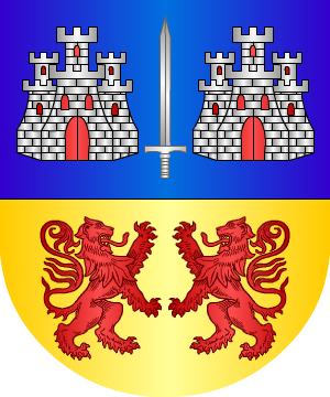 Castellano, del lugar de Pedrosa (Burgos). Armas En campo de plata, cinco cuervos de sable colocados en sotuer; partido de azur, un castillo de plata. Bordura de gules, con ocho aspas de oro. |