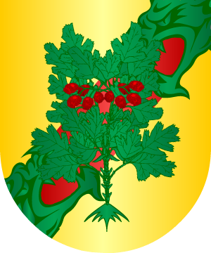 diestro del jefe y siniestro de la punta de una estrella de plata, y en los