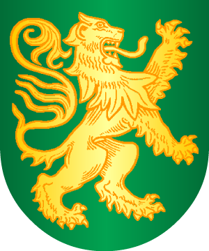 águila de plata, picada y membrada de oro. Bordura de azur, con ocho