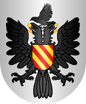 Escudo cortado: 1º cuartelado, 1º y 4º de azur, un águila