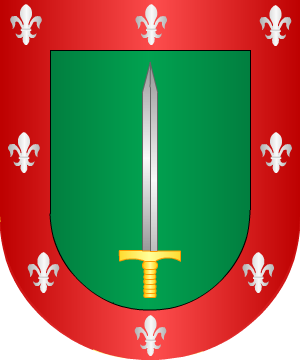 panelas de sinople. 12.- Los de Laredo (Cantabria), según Francisco Lozano, traen: Escudo partido: 1º, en campo de azur, cinco estrellas de oro, y 2º, en campo de sinople, sobre ondas de agua de azur y plata, unas peñas y sobre ellas una torre almenada con su homenaje; bordura de oro. 13.- Los radicados en León, usan: En campo de sinople, dos cabezas de mujer, al natural, puestas en faja. 14.- Los radicados en León y Valladolid, usan: En campo de oro, doce cabezas de águila de sable, arrancadas y goteando sangre, con el pico y ojos de oro. 15.- El Marqués de Ciadoncha para los Aparicio de Uribe recoge este otro: En campo de gules, dos torres de plata, unidas por un lienzo de muralla, y en medio de las torres, una estrella de oro; bordura de plata, con diez panelas de sable. 16.- Los Aparicio de Uribe, de la anteiglesia de Abando, según Gonzalo Argote de Molina, traen: Escudo cortado por una faja de oro: 1º, en campo de gules, dos castillos de oro y en medio de ellos una estrella de oro, y 2º, en campo de gules, trece estrellas de oro. 17.- Otros Aparicio de Uribe, traen: En campo de sinople, dos castillos de oro, uno sobre otro, y doce estrellas, también de oro, colocadas de dos en dos, seis a la izquierda y seis a la derecha. Información de estos linajes complementada por cortesía de blasonari.net |