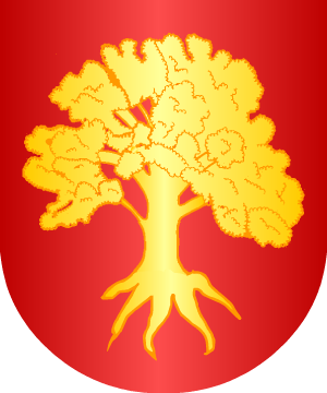 de gules, una en el jefe y otra en la punta, y 2º, en campo de azur, un