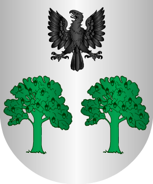 y 3º, en campo de plata, una encina de sinople, sobre ondas de agua de
