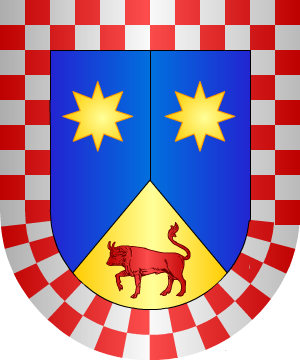 consta el siguiente escudo para los Aznar: En campo de oro, cuatro palos, de