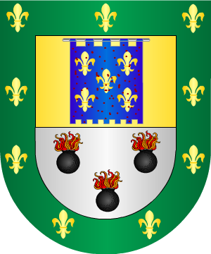 plata, cada una con un león rampante de gules, y de catorce piezas de