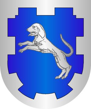 de sable. Divisa: "Usque in sinum iovis". 13.- Los de Girona, según Francisco de Alós de Fontcuberta, traen: En campo de oro, seis espigas de trigo de sinople, saliendo de su terreno. El pie, de azur, con tres fajas ondeadas, de plata. En jefe, dos brazos de amistad, el uno vestido de azur y, el otro, de gules. 14.- Otros: En campo de azur, un perro, de plata, en banda, con collar de gules. Bordura de compones de plata. 15.- Otros: En campo de sinople, una torre de plata sobre ondas de mar, de azur y plata. Bordura de azur, con ocho veneras de oro. Complemento de información de estos linajes por cortesía de blasonari.net |