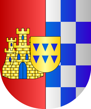 en campo de gules, un castillo de oro, aclarado de azur, por el apellido Carrillo,