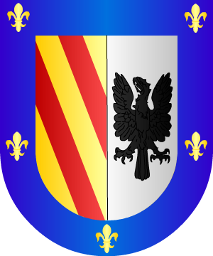 casa nueva de plata, sumada de una flor de lis del mismo metal. 2.- Algunos ponen la flor de lis cargando sobre la fachada de la casa, en lo que hay error, pues de esa manera aparece el metal de la flor de lis sobre el metal de la casa, en contra de las leyes heráldicas. 3.- Otros, también en el Reino de València, modifican dicho escudo en esta forma: En campo de oro, una casa nueva de gules, y el jefe de gules, con un sol de oro entre dos flores de lis de plata. 4.- Los de València, según Vicente de Cadenas, traen: En campo de gules, una casa de plata surmontada de una flor de lis de oro. 5.- En el sello del citado Cardenal Juan de Casanova, natural