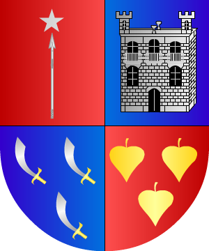 león rampante de oro, y 4º, de azur, con una ciudad (en recuerdo