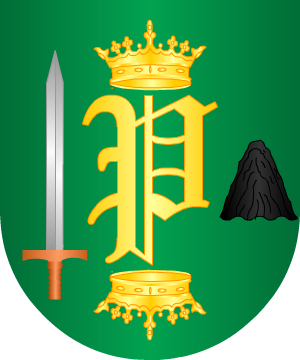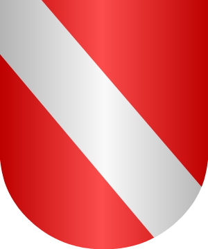 general de oro, con siete cabezas de indios engarzadas en una cadena de sable. Imagen: Fuente; Wikipedia, Este archivo se encuentra bajo la licencia Creative Commons Genérica de Atribución/Compartir-Igual 3.0 30.- Los Cortés del Perú, en cuya línea primogénita se incorporó por alianza el título de Marqués de Cañada Hermosa, tienen escudo partido de un rasgo y cortado de dos, formando seis cuarteles: 1º, en gules, una corona de plata; 2º, en oro, un león andante de sable; 3º, en oro, una estrella de gules; 4º, en gules, cuatro palos de plata; 5º, en plata, nueve anillos de azur, puestos en tres fajas, y 6º, en plata, tres flores de lis de sinople. 31.- Los de la casa de Tafalla (Navarra) traen: "Una cruz y devaxo un castillo". Así se describen en documentos de la Nobleza ejecutoriada de Navarra, pero no se indican los esmaltes. 32.- En el sello del navarro Ramiro González de Cortés, año 1304, constan: Escudo bandado de doce piezas. 33.- En el Palacio de Lavalle y en la cerca del Palacio de Lavalle, del barrio del Valle, del Concejo de San Julián de Musques, del valle de Somorrostro (Vizcaya), constan: Una gran P coronada, con una espada a la diestra y silueta de isla a la siniestra y al pie y en anillo corona invertida. 34.- En Castellanos de Bureba (Burgos) existe este escudo para los Cortés: Un castillo donjonado, con una estrella de ocho puntas en el cantón diestro del jefe. En la puerta del castillo aparece un guerrero con una espada en la mano diestra, alzada y una rodela en la siniestra. En la punta, en posición desordenada, hay un número indeterminado de cabezas seccionadas de sus cuerpos, posiblemente seis o siete. En la bordura, la siguiente leyenda: "Tente forta nec ten quenta Cortés", cuya posible traducción es "Mantente fuerte y no lo tengas en cuenta Cortés". 35.- Los de Galicia usan: Escudo cortado: 1º, en campo de plata, un águila de su color, posada, y 2º, en campo de oro, un león de púrpura. 36.- Otros de Galicia: Escudo contracuartelado: 1º, en plata, un águila de gules, coronada de oro; 2º, en sable, tres coronas de oro, mal ordenadas; 3º, en gules, un can de oro, armado y coronado de oro; 4º, en azur, siete cabezas de niño, de encarnadura chiveladas, puestas tres, tres y una, y 5º, naciente del pie de un árbol al natural, terrasado y con un can de plata al pie, encadenado de oro. 37.- Los radicados en Montevideo (Uruguay), según Vicente de Cadenas, usan: En campo de azur, un hombre con atuendo del siglo XVIII, haciendo una reverencia y saludando con el sombrero en su diestra, sobre terrasa de plata. 38.- En el expediente de hidalguía de la Real Chancillería de Valladolid del citado Manuel Francisco de Paula Cortés y del Olmo, natural de Sigüenza, constan: Escudo con dos leones, el escudo en cuatro partes, en la una banda cuatro antorchas y dos luceros encima, debajo unos. (La descripción parece estar incompleta, interpretamos que ha querido decir "debajo, uno" en lugar de "unos"). 39.- Los apellidados Cortés de Bernabé, originarios de Báguena (Teruel) y radicados en Huesa del Común (Teruel), usan: Escudo partido: 1º, en campo de oro, tres corazones de gules, y 2º, en campo de azur, un castillo de plata, ardiente de gules, resaltado de dextrogero armado de plata, moviente desde su ventana diestra, empuñando espada y dos llaves. 40.- Los Cortés de Diáguez, de Aragón, según Pedro Vitales, traen: En campo de oro, una banda de azur acostada de dos flores de lis de azur. 41.- Los Cortés-Funes, radicados en Madrid, según Vicente de Cadenas, usan: Escudo partido: 1º, en campo de plata, un árbol, de sinople, y 2º, en campo de oro, tres luneles, de azur, puestos en palo. 42.- Los Cortés-Monroy, originarios de Zarza de Alange (Badajoz), y los pasados a Chile en el siglo XVI, según Vicente de Cadenas, traen: En campo de oro, cuatro palos de gules, y bordura de azur, con ocho cruces de San Juan de oro. 43.- Los Cortés de Torres, de Aragón, usan: En campo de gules, un castillo de oro, orpasado de azur. 44.- Los Cortés de Torresecas, de Aragón, según Gregorio García Ciprés, traen: En campo de gules, un castillo de oro, adjurado de azur y superado de siete estrellas de oro, acompañado en punta de una parrilla de San Lorenzo, de sable. Complemento de información de estos linajes por cortesía de blasonari.net |