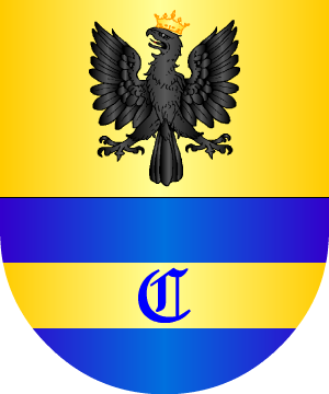 con media flor de lis de plata y un ala de oro. 6.- Otros: En campo de oro, un pino sumado de la imagen de la Virgen de la Inmaculada Concepción; al pie del pino un buey pasante. Bordura de oro cargada de ocho escudetes de gules partidos, con media flor de lis de plata y medio vuelo de oro, unidos en la línea de intersección. 7.- Otros, según Jorge de Montemayor, traen: En campo de oro, un árbol de sable. Bordura de plata con ocho escudetes de gules. 8.- Otros: En campo de plata, ondas de azur y plata y sobre ellas, un pez, de su color. 9.- Otros: En campo de oro, una encina, de sinople, arrancada y acompañada de una espada, en la diestra. 10.- Los de Ávila, según Rietstap, traen: De plata, un palo, de gules, cargado de dos besantes, de oro. 11.- Los de Aragón, según Rietstap, usan: De oro, un árbol arrancado, de sinople. 12.- Otros de Aragón, según Rietstap, traen: De azur, un árbol de sinople, terrasado de lo mismo y frutado de oro. Bordura de gules, cargada con ocho escudetes de azur, cargado cada uno de tres flores de lis, de oro, bien ordenadas. 13.- Los de Castilla, según Rietstap, usan: Escudo cuartelado: 1º y 4º, de plata con un árbol de sinople, terrasado de lo mismo y frutado de oro, acompañado de un lobo pasante, de sable, atravesado al tronco; 2º y 3º, de azur, cinco veneras, de oro, colocadas en aspa. 14.- Otros, según Rietstap, traen: Escudo partido: 1º, de azur, un tallo de castaño, de oro, frutado de cinco castañas, de lo mismo, colocadas una, dos y una, terrasado de sinople, y un perro pasante, de oro, atravesado; 2º, de azur, cinco veneras de oro, colocadas en aspa. 15.- Los de Milán, según Rietstap, traen: Escudo cortado: 1º, de oro, un águila de sable, coronada de oro; y 2º, de azur, una faja, de oro, cargada de una C de azur. 16.- Otros de Milán, según Rietstap, usan: Escudo cortado: 1º, de oro, un águila de sable; 2º, de gules, tres bandas, de plata; brochante sobre el centro del escudo, una faja, de azur, cargada de dos C góticas, de plata. 17.- Los de Lombardia, según Rietstap, traen: De oro, un tenedor, con mango corto y adornado, de gules, de dos dientes (puntas), sumado de una corona del mismo color, y acompañado de tres castañas de gules, colocadas, dos en los flancos y una en punta. 18.- Los de Sicilia, según Rietstap, usan: De azur, una rama de castaño, frutada de cinco castañas colocadas una, dos y una, todo de oro, sobre una terrasa de sinople. 19.- Los de Roma, según Rietstap, traen: En campo de oro, una banda de gules, cargada de tres bezantes, de oro. 20.- Otros de Roma, según Rietstap, traen: De azur, un árbol de sinople, terrasado de lo mismo y frutado de oro, con un unicornio pasante, de oro, atravesado al tronco, en jefe una estrella, de oro. 21.- Los de Nápoles, según Rietstap, usan: De azur, un árbol de sinople, frutado de oro, acompañado de dos leones rampantes y afrontados, del mismo color, todo sobre una terrasa de sinople. 22.- Otros de Nápoles, según Rietstap, traen: De azur, una faja de oro, acompañada en jefe de tres veneras, de oro, colocadas en faja, en punta tres bandas de oro. 23.- Los de Venecia, según Rietstap, usan: De oro, un árbol de sinople, frutado de oro. 24.- Los de Bolonia, según Rietstap, usan: De azur, una faja de gules, acompañada en jefe de las letras O C del mismo color. Jefe de oro, cargado de un águila de sable, coronada de oro. 25.- Otros de Bolonia, según Rietstap, traen: De azur, una campana de plata, acostada de dos leones rampante y afrontados de oro. Jefe de azur, cargado de tres flores de lis, de oro, colocadas entre los huecos de un lambel de cuatro puntas, de gules. 26.- Los de Francia, según Rietstap, usan: De gules, una castaña, de oro. 27.- Los de Flandes, según Rietstap, traen: De oro, tres bandas, de gules, acompañadas de dos roeles, de sinople, una en el jefe a la siniestra y el otro en punta a la diestra. 28.- Los de Colonia, según Rietstap, usan: De sinople, diez bezantes, de oro. 29.- Los de Bohemia, según Rietstap, traen: De azur, cinco bezantes, de oro, colocados en aspa. 30.- Los de Hungria, según Rietstap, usan: De azur, una barra, de gules, brochante una banda, de plata; el sotuer formado cantonado de cuatro bezantes de oro. Información de estos linajes por cortesía de blasonari.net |