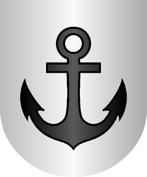 pez de plata contornado, nadando sobre ondas de plata y azur y llevando al lomo