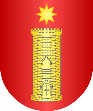 atados a la puerta. Bordura de azur, con cuatro estrellas de oro y cuatro flores