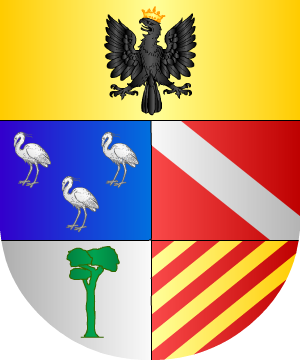 Apellido patronímico, derivado del nombre propio de Garci o García. En el idioma godo, significaba "Príncipe de vista agraciada". Se ha presentado la duda si el apellido García tuvo su origen en Euskalerría. Menéndez Pidal dice: "El nombre vasco García es ya citado en los años 789 y 791 en Castilla. La reina Jimena de León, antes princesa navarra, lo introdujo en Castilla. Uno de sus hijos se llamó García, nombre introducido en Occidente por influencia navarra. Ante la invasión árabe, muchas familias de Castilla, Aragón y Vasconia, huyeron. Tan grande fue la desbandada y tan confusa que se llegó a perder el contacto familiar y los niños olvidaron hasta su nombre. Motivo por el que gran cantidad de ellos eligieron el de García, lo que hizo popular el dicho: "Quien nombre no tenía, García se ponía". Lo anterior se refiere al nombre. ¿Y el apellido? ¿Efectivamente es vasco? García procede de Hortza, Artza, Baartze o Hartze, Es oriundo de Iparralde, lugar donde se aspira la "h", es un sonido parecido a la "g", por esto se aplicó dicha letra por los amanuenses y como no sabían pronunciar la "tz" sufrió muchas variaciones en su escritura. Muchos de los caballeros que lo ostentaron desde remotos tiempos tuvieron la dignidad de Ricohombres. Uno de los primeros varones apellidados García, de que se tiene noticia, fue Ramiro García, Potestad y Gobernador por los años 843. En 981 florecieron Nuño García y Fortún García, este último Señor de la Torre de Tovar; Sancho García fue Conde de Castilla en el siglo X. Varias familias de este apellido proceden de Garci-Jiménez, el héroe de la reconquista de Aragón, que ganó Ainsa, donde fortificó tomando el nombre de Rey de Sobrarbe. Muchas de las numerosas casas del apellido García no tuvieron igual origen ni proceden de un mismo primitivo solar y tronco. Por el contrario, son tan varias y dispares sus procedencias que no existe entre la mayoría de ellas ningún vínculo de parentesco, ni la mas leve y primitiva comunidad de sangre pues, la coincidencia de apellidarse de igual modo, queda plenamente explicada con la antigua y generalizada costumbre de convertir en apellido patronímico el nombre propio de un antecesor. El apellido García está muy extendido por la Península y América. En la actualidad en el apellido de mayor difusión en España. Un 3,65% de los españoles tienen este apellido. Su distribución alcanza a todas las actuales comunidades, siendo el más difundido en 11 de las 17 existentes: Castilla y León (5,33%), Madrid (4,21%), País Vasco (2,67%), Navarra (2,10%), Aragón (2,44%), Andalucía (3,69%), Extremadura (3,33%), Castilla la Mancha (4,61%), Cataluña (2,84%), Comunidad Valenciana (3,44%), y Baleares (2,21%). En otras tres ocupa el segundo lugar: Rioja (3,3%), tras el apellido Martínez (4,2%), Murcia (5,32%), también tras el apellido Martínez (6,54%) y Asturias (3,59%), tras el apellido Fernández (7,92%). En Cantabria (3,59%) es el tercero tras Fernández (4,13%%) y González (3,67%) y, dinalmente, en Canarias (3,54%) y Galicia (2,89%) ocupa el quinto lugar tras Rodríguez (4,88%), González (4,76%), Hernández (4,24%) y Pérez (3,76%), y Fernández (4,07%), Rodríguez (3,68%), González (3,28%) y López (2,94%), respectivamente. Armas (1 al 50) 1.- En Asturias, usaron los García más antiguos estas armas: En campo de plata, una garza de plata picandose el pecho, en el que muestra una herida. Bordura de gules, con este lema en letras de oro: "De García arriba nadie diga". (Ref.: MOGROBEJO). 2.- Otros pintan esta bordura de oro y las letras de sable. D'argent, à un héron de sable dans l'attitude de l'aigle héraldique, s'ouvrant du bec la poitrine ensanglantée, à la bordure d'or, chargé des mots DE GARCIA ARRIBA NADIE DIGA, en lettres de sable. (Ref.: RIETSTAP), (ref.: MOGROBEJO). 3.- Los de Galicia, Asturias y Burgos traen: En campo de plata, una garza de sable, con el pecho rajado; bordura de gules, con este lema: "De García arriba nadie diga", en letras de oro. (Ref.: ATIENZA), (ref.: GONZALEZ-DORIA), (ref.: GARCIA CARRAFA), (ref.: CADENAS), (Ref.: CRESPO DEL POZO). 4.- Una rama de Andalucía trae: En campo de plata, una garza de sable, con el pecho rajado; bordura de azur, con ocho aspas de oro. (Ref.: ATIENZA), (ref.: GONZALEZ-DORIA), (ref.: GARCIA CARRAFA), (ref.: CADENAS), (Ref.: CRESPO DEL POZO). 5.- Los del concejo de Carreño, los de la villa de Candás y los de la parroquia de Guimarán de Moncalvillo (Burgos) traen: Escudo cuartelado, 1º de oro, una garza de sable picándose el pecho y un globo terráqueo de azur a su lado; 2º de plata, un castillo de gules, cargada la torre central con un ángel con dos alas al natural, y a la puerta del castillo, un hombre armado con espada y rodela; 3º de plata, cinco cabezas de moro con sus turbantes puestas en sotuer; y 4º de gules, una espada desnuda de plata puestas en faja, acompañada de tres morriones o celadas de acero con viseras y plumaje, dos en lo alto y una en lo bajo. Bordura de plata con veinticuatro escudetes de sable. (Ref.: ATIENZA), (ref.: GONZALEZ-DORIA), (ref.: GARCIA CARRAFA), (ref.: CADENAS). 6.- Otros de Burgos y Asturias traen: Escudo cuartelado, 1º y 4º de gules, una mano apalmada de hombre, y en punta ondas de mar de azur y plata; y 2º y 3º de azur, un lucero de ocho rayos de oro. (Ref.: ATIENZA), (ref.: GONZALEZ-DORIA), (ref.: GARCIA CARRAFA), (ref.: CADENAS), (ref.: MOGROBEJO). (este último autor indica que las manos son de plata). 7.- Los del concejo de Corvera (Asturias) traen: En campo de sinople, dos leones rampantes y afrontados al natural; en jefe dos flores de lis, una de plata y otra de azur, retocada de plata. (Ref.: ATIENZA), (ref.: GONZALEZ-DORIA), (ref.: CADENAS). 8.- Los de la parroquia de Soto y villas de Cangas de Onís y Llanes: Escudo cortado: 1º, de plata, con tres pinos de sinople, bien ordenados, y 2º, de azur, con un león rampante de plata. (Ref.: GARCIA CARRAFA). 9.