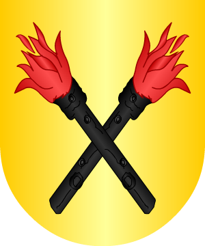 Partido de gules y oro y del uno al otro, un águila. (Ref.: CADENAS). |