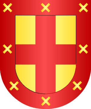 Escudo partido: 1.º, en campo de gules, un castillo de oro, y bordura de plata, con ocho escudetes de azur, cargados de una banda de plata cada uno, y 2.º, en campo de plata, tres fajas de azur, y bordura de ocho piezas, cuatro de oro, con un lobo de sable, y cuatro de gules, con una estrella de oro. (Ref.: ATIENZA), (ref.: GONZALEZ-DORIA), (ref.: CADENAS). |