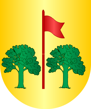 En gules, un león, de oro, coronado de lo mismo y cubierto su brazo diestro de una armadura de plata, sosteniendo en su mano una espada del mismo metal. (Ref.: CADENAS). |