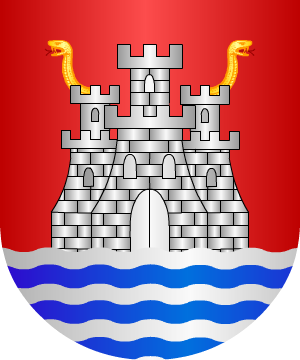 Parti: au 1, d'or, à trois coqs de sable, barbés, crêtés et membrés de gueules, l'un sur l'autre; au 2, d'azur, à un château d'or, ouvert du champ, et une flamme au naturel, issante de chacun des trois créneaux (ou: au 2, de gueules, à une tour d'or, ouverte du champ, donjonnée de trois tourelles, celle du milieu sommée d'une fleur-de-lis d'or, ladite tour escaladée d'un homme, habillé d'un cotillon à la romaine de pourpre, tenant de la main dextre une épée et de la senestre une rondache, montant sur une échelle de sable, mouv. du côté dextre de la pointe et attachée au donjon senestre). L'écu entouré d'une bordure d'argent, ch. de dix flanchis de sable (V. Gallo de Salamanca). (Ref.: RIETSTAP). |