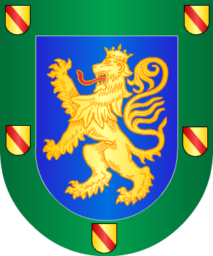 En oro, un roble, de sinople, acompañado de cinco estrellas, de azur, rodeándole. (Ref.: CADENAS). |