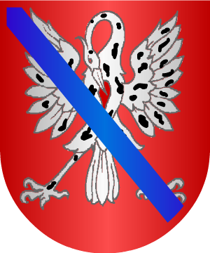 14.- En campo de sinople, una banda, de gules, engolada en dos dragantes de oro.