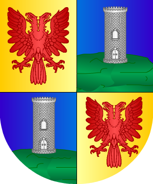y 2º, de plata, un lobo de sable, pasante sobre una terrasa de sinople. 14.- Catalán: Escudo partido: 1º, de... (Señal