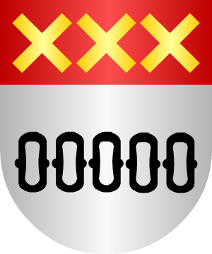 de oro, saliente del flanco siniestro en una nube, un brazo vestido de azur,