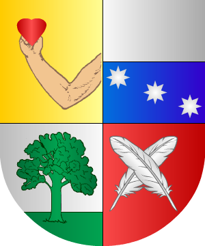 y el del centro de azur. 25.- De ..., un roble englantado y arrancado de ...; brochante