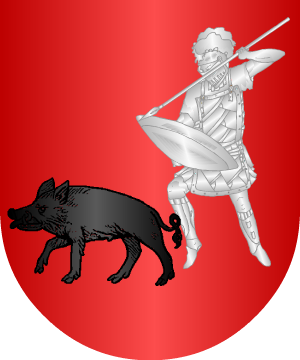 2.- Algunos de este apellido usaron también: Partido: 1º, las armas anteriores, y 2º, de oro, con una cruz flordelisada de azur, cantonada de cuatro calderas del mismo color. Bordura para este cuartel, de plata, con cinco panelas de sinople. 3.- Otros: En sinople, dos cabezas de león, de oro, puestas en faja. 4.- Otros: En gules, un guerrero, de plata, alanceando un jabalí, de sable. 5.- Otros: Una torre sobre ondas de mar rodeada de una cadena. Información de estos linajes complementada por cortesía de blasonari.net |