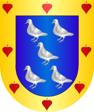 Usansolo Usuensolo Usunsolo Usunlo De todas estas maneras se denomina una casa sita en el barrio de Usansolo (cuyo nombre tomó), del Ayuntamiento de Galdakao, en el partido de Durango (Bizkaia), que fue filial de la de Usátegui. Juan de Usunsolo y Leiva, natural de Arratia, racionero de Córdoba, probó su nobleza para ejercer cargos del Santo Oficio de la Inquisición de Córdoba, en 4 de Abril de 1565. Fue hijo de Fortuno de Usunsolo y Atucha, quien mató a Beltrán de Caicedo en Pancorvo (Burgos), y pasó a Indias en 1514, donde falleció en 1516 (hijo de Juan Ortiz de Usunsolo y de Teresa de Atucha), y de Ana de Leiva, natural de Pancorvo (hija de Fernán Ruiz Carrasco y de Ana de Leiva, ambos naturales de Pancorvo). Armas 1.- Las primitivas armas de este linaje son: En campo de oro, cinco panelas de sinople puestas en sotuer. Bordura de sinople con una cadena de oro. 2.- Según el Cronista Vidal y Julián José Brochero usan: En campo de plata, cinco panelas, de gules, puestas en aspa, y partida cada una por un filete de oro. 3.- Después usó, según Juan Carlos de Guerra y Juan Iñiguez de Ibarguen: Escudo partido: 1º, en campo de azur, una torre de oro, y bordura para este cuartel, la mitad de azur y la otra mitad de gules, con trece estrellas de oro, y 2º, en campo de plata, tres fajas de sable. Del centro de la primera faja pende una cadena de oro, de tres trazos, que llega hasta la última faja, y cuatro estrellas de oro, una donde se pende la cadena, otra donde termina y las otras dos en las esquinas de la faja segunda, o sea la del medio. Lema: "Dominus mihi adjutor". Estas armas son las mismas del apellido Urrista, de Cenarruza, con el que entroncó. 4.- Otros: En campo de oro, un jirón, de gules. Información de estos linajes complementada por cortesía de blasonari.net |