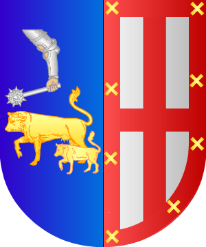 8.- Juan Baños de Velasco señala que el campo del anterior escudo es de púrpura. 9.- Los de Guipúzcoa, según José Arévalo, traen: Escudo cuartelado: 1º y 4º, en campo de plata, un lobo andante de sable, salpicado de oro, linguado y uñado de gules, y 2º y 3º, jaquelado de oro y azur. 10.- Los de Guipúzcoa, según J.-B. Rietstap, traen: En campo de azur, una vaca de oro, con su cría, del mismo metal, sobre una terrasa de oro, aislada, surmontada en jefe de una mano guantelada de plata, adornado de lo mismo, que sujeta un hacha de dos hojas de plata. 11.- Los de origen castellano, según Vicente de Cadenas: En campo de oro, una cuba, de su color. 12.- Los radicados en Cádiz, según el anterior autor: En campo de plata, un caballo, parado, de sable, manchado de plata. 13.- Otros: En campo de sinople, una garza, de oro, con una piedra en su pata diestra. 14.- Otros: En plata, un pico, de águila, de oro, linguado, de gules. 15.- Otros: En campo de plata, una torre, de su color y desde sus almenas, un guerrero, arrojando de ella a un moro. 16.- Otros: En campo de oro, una banda, de gules. 17.- Los Yarza-Mariztegui, de Oñate, según Juan Carlos de Guerra, usan: Escudo partido: 1º, en campo de azur, una vaca andante con su cría, ambas de oro, acompañadas en jefe de una mano que sostiene alta una maza de plata, y 2º, en campo de plata, una cruz llana de gules, y bordura para este cuartel de gules, cargada de ocho cruces de oro. 18.- Los apellidados Yarza de Amorebieta traen: En campo de plata, dos lobos, de sable, puestos en palo y resaltados de una espada, de oro. 19.- Los apellidados Yarza de Amurrio usan: En campo de azur, un castillo, de oro. Bordura de sinople con siete estrellas, de oro. 20.- Los Yarza de Mediana traen: En campo de azur, ocho menguantes, de plata, puestos tres, dos y tres. Complemento de información de estos linajes por cortesía de blasonari.net |