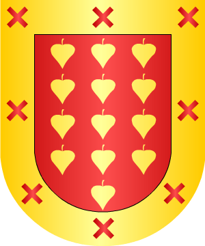 Yuste Yuste de la Torre Yuste Decillan Yuste-Dóriga Yuste de Vianos Linaje originario del Reino de Navarra, citado en documentos del siglo XIV. Francisco Zazo de Ulloa señala que la primitiva casa solar de Yuste radicó en la provincia de Guipúzcoa. Pasó a la conquista de Jerez de la Frontera (Cádiz), donde fundó nueva casa. Probaron su nobleza ante la Real Chancillería de Granada, en los años que se indican: Pedro Yuste y hermanos, vecinos de Lorca (Murcia), en 1538, y Pedro de Yuste de Iranzo, vecino de Utiel (València), en 1532. Armas 1.- Las primitivas son: En campo de oro, una banda de gules, engolada de dragantes de sinople. 2.- Los de Jerez de la Frontera añadieron al anterior escudo una bordura de azur con ocho estrellas de oro. 3.- Otros, según Manuel Vidal Salvador, usan: En campo de azur, un castillo de oro, con dos leones rampantes de oro, y empinantes al castillo. Bordura de azur, con ocho estrellas de ocho rayos de oro. 4.- El Cronista y Rey de Armas Gracia Dei señala que las primitivas armas son: En campo de gules, tres coronas de oro. 5.- El citado Cronista señala que Leonejildo de Yuste, conquistador de Cuenca, añadió al anterior escudo por hallarse en el cerco del castillo de Garci Muñoz: En campo de gules, un castillo de plata, y encima de la puerta una mano cortada, goteando sangre, con una leyenda que dice "por la fe", entre la puerta y la mano. Bordura de azur, con tres coronas de oro. 6.- Otros: En campo de plata, una faja de gules. 7.- Otros: En campo de gules, una cruz de plata. 8.- Otros: En campo de azur, un palacio de oro, surmontado de un águila de sable. 9.- Otros: En campo de gules, un vuelo, de plata. 10.- Los Yuste de la Torre, radicados en Arcos de la Frontera (Cádiz), según Vicente de Cadenas, traen: En campo de plata, cinco bandas, de gules. 11.- Otros Yuste de la Torre 2, de Arcos de la Frontera, usan: En campo de azur, cinco barras, de oro. 12.- Otros Yuste de la Torre 3, de Arcos de la Frontera, usan: En campo de azur, cinco barras, de plata. 13.- Otros Yuste de la Torre 4, de Arcos de la Frontera, usan: En campo de azur, cuatro barras, de oro. 14.- Otros Yuste de la Torre 5, de Arcos de la Frontera, usan: En campo de azur, cuatro barras, de plata. 15.- Otros Yuste de la Torre 6, de Arcos de la Frontera, usan: En campo de azur, cinco bandas, de oro. 16.- Otros Yuste de la Torre 7, de Arcos de la Frontera, usan: En campo de azur, cinco bandas, de plata. 17.- Otros Yuste de la Torre 8, de Arcos de la Frontera, usan: En campo de azur, cuatro bandas, de oro. 18.- Otros Yuste de la Torre 9, de Arcos de la Frontera, usan: En campo de azur, cuatro bandas, de plata. 19.- Los apellidados Yuste Decillan traen: En campo de plata, una encina, de sinople, con una escala apoyada a su tronco. 20.- Los apellidados Yuste-Dóriga usan: En campo de oro, una encina, de sinople, con dos lobos, cebados, pasantes, al pie de su tronco, en palo. 21.- Los apellidados Yuste de Vianos usan: En campo de oro, una rueda de molino, de azur. Jefe de plata, con una faja, de gules. 22.- Otros Yustes traen: En campo de gules, una lis, de oro. 23.- Otros Yuste: En campo de plata, una cruz de gules, fijada. Bordura de gules, con cuatro veneras de plata. Complemento de información de estos linajes por cortesía de blasonari.net |