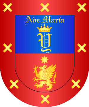 oro, surmontada de una corona del mismo metal, y en el jefe el lema "Ave
