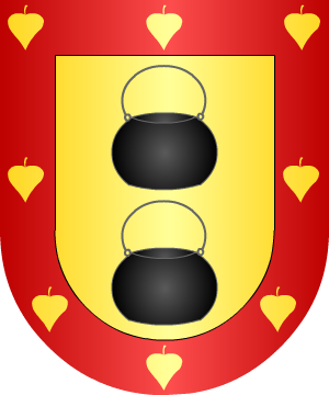seis bezantes de plata, puestos de dos en dos. 20.- Los radicados en Madrid, según Vicente de Cadenas: En campo de oro, dos calderas, de sable, puestas en palo. Bordura de gules, con ocho panelas, de oro. 21.- Otros, según el Cronista Juan José Vilar y Psayla: Escudo ajedrezado de oro y gules. 22.- Otros, según Pedro Vitales: En campo de gules, un grifo de oro, surmontado de una estrella del mismo metal. 23.- Otros: En campo de gules, una cruz de veros de azur y plata. 24.- Otros: En campo de gules, una cruz de veros de azur y plata. Bordura de gules, con ocho aspas de oro. 25.- Los de Castilla y León, según Miguel de Salazar: En campo de sinople, un grifo de oro coronado, y surmontado de una estrella de oro. 26.- Los del valle de Trasmiera, según Miguel de Salazar: En gules, un grifo de oro. 27.- Los Agüero, de Agüero (Huesca), y sus ramas en Huesca y Zaragoza, traen: Escudo cuartelado; 1º y 4º, en oro, un águila de sable, y 2º y 3º, en gules, una flor de lis de oro. 28.- Otros: En campo de oro, un águila coronada de sable y uñada de gules. 29.- Los de Burgos, según Diego de Soto y Aguilar: En campo de gules, tres fajas de oro, verada de sable la central. 30.- Los de San Vicente de Toranzo (Cantabria), y radicados en Tegucigalpa (Honduras), traen: En campo de gules, un grifo, de oro, coronado, linguado y uñado, surmontado de una estrella, de oro, de ocho puntas en el cantón diestro y en el siniestro de una Y surmontada de una corona de oro. 31.- Mateo de Agüero y Marcos, Secretario del Consejo y Cámara de Indias, natural de Moraleja de Coca (Segovia), originario del lugar de Orejo (Cantabria), Caballero de la Orden de Carlos III desde 1732, usaba por armas: En campo de gules, un grifo de oro, con corona, portando una bandera desplegada de azur, perfilada de oro, y surmontada de una estrella del mismo metal. 32.- Otros, de Aragón, según J.-B. Rietstap, traen: En campo de oro, un león rampante al natural, que sostiene en la mano diestra una bandera de gules, cargada de una faja de plata, flotante a la siniestra, la cabeza del león surmontada de un sol de gules. 33.- En la casa de Agüero, en Agüero, constan las siguientes armas: Escudo cuartelado: en jefe abarcando ambos cuarteles el lema "Ave Maria": 1º, una barra, acompañada en jefe de dos órdenes de veros; 2º, una Y coronada; 3º, una bandera de dos puntas, inclinada, puesta sobre ondas de agua, y 4º, un grifo rampante coronado, y en el cantón diestro del jefe una estrella de ocho puntas. Bordura con nueve aspas. 34.- Los del lugar de Agüero, en el valle de Soba (Cantabria), según Joseph Arévalo, traen: Escudo cortado: 1º, en plata, un grifo de su color natural, y señalando con su mano diestra un lucero de gules, que está en el cantón diestro; con su mano siniestra tres veros de azur, y con su pierna diestra seis veros de azur, que están a su pie, y 2º, partido: primero, en sinople, una Y de oro, coronada de oro, y a su pie ondas de agua de azur y plata, y naciente de ellas de la parte siniestra una bandera de gules, y segundo, en azur, dos flores de lis de oro, puestas en palo. Bordura general de plata, con el cordón pardo de San Francisco. Timbre: Un ancora de hierro, y un volante de plata, con el siguiente lema, en letras de sable: "El norte de mis hazañas en el mar bravo y sereno fue mi Agüero". 35.- Don Carlos I concedió, en 7 de Diciembre de 1537, las siguientes armas a Diego de Agüero, conquistador de Indias: En campo de sinople, un puente de piedra sobre ondas de agua de azur, con un árbol a cada lado del puente; partido de oro, con un peñasco sobre el que está un tigre rampante, sosteniendo con las manos el asta de una bandera de azur y gules; bordura de gules, con dos piñas de oro y cuatro granadas, también de oro. El yelmo, cerrado, con un rollo de oro y azur. Por divisa, medio tigre. Complemento de información de estos linajes por cortesía de blasonari.net |
