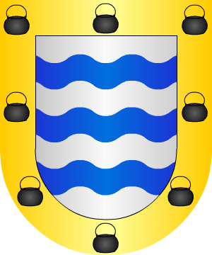 La noble ya antigua casa de Aguayo es una de las más calificadas de España. En una batalla que dio Pelayo a los moros cerca del río llamado Debas, contribuyeron eficazmente a la victoria tres valientes hermanos godos. En el calor de la pelea, vio el mayor de ellos a su Príncipe atacad por el enemigo en la orilla opuesta, y olvidándose de los peligros a que se exponía, voló en su auxilio, echándose al río y cruzando las aguas a nado. Terminada la refriega, el Príncipe, admirado del arrojo de su salvador, le preguntó como había podido resistir el ímpetu de las aguas, a lo que contestó el aludido caballero diciendo: “En servicio vuestro, no temo al agua yo.” De cuyas dos últimas palabras le quedó desde entonces el apellido Aguayo, que después conservaron sus ilustres sucesores. I. Fernán de Aguayo. Señor de la Torre y casa fuerte solar de aguayo en el lugar de Molledo, del valle de Iguña, en las montañas de Santander, pasó con su hijo y nieto a las conquistas de Andalucía. Este hijo de Fernán se llamó II. Diego Fernán Aguayo, que sirvió al Rey Don Fernando III el Santo en ls conquistas de Ubeda y Baeza (Jaén), donde tuvo su padre repartimiento, y en las de Córdoba y Ecija (Sevilla), señalándose en esta última su valor con la memorable hazaña de ser el primero que enarboló el pendón real, tocándole por ello en reparto los palacios que por él se llamaron de Diego, más unas huertas y tierras. Tuvo este caballero dos hijos: Rui Gutiérrez de Aguayo y Juan de Aguayo. El primero le acompañó, como hemos dicho, en las referidas conquistas de Andalucía, y al segundo lo dejó por Teniente de la Torre y casa fuerte de Aguayo. Al morir, le sucedió su primogénito. III. Rui Gutiérrez de Aguayo, que fue Señor de los palacios de Diego, en Ecija; de la Torre y fortaleza de Aguayo, en el lugar de Molledo, y del Patronato de la Iglesia de Santa Olaya. Fue también el primero del linaje que se avecindó en Córdoba, donde casó con Elvira de Torres, Señora de los Galapagares. De este matrimonio nacieron: 1.º Ryi Gutiérrez de Aguayo, que sigue la línea y IV. Rui Gutiérrez de Aguayo, segundo del nombre, vasallo del Rey, Comendador de Valderricota en la Orden de Santiago, Señor de la Torre y valle de Aguayo (Cantabria), y de los palacios de Diego en Ecija, Patrono de la Iglesia de Santa Olaya y segundo Señor de Galapagares, contrajo matrimonio con Urraca Alfonso de Biedma. Otorgó testamento en Ecija, en 1380, y vivió cerca de cien años. Le sucedió en su casa y demás Señoríos su hijo IV. Fernán Ruiz de Aguayo, tercer Señor de Galapagares, vasallo del Rey, Veinticuatro de Córdoba, que casó dos veces: la primera con Elvira Fernández de Gaete, hija del Señor de Montón de la Tierra, y la segunda con María García Carrillo, hija del tercer Señor de Santofinia. Otorgó testamento en Córdoba en 1424. De la descendencia de los Aguayo de las diversas ramas de este linaje, como se verá en las casas de Aguilar, Villavicencio, Henestrosa, Sousa, Laso de la Vega, Ponce de León, Corral, Manrique, Córdoba, argote, Ríos, Silva y otras, tienen procedencia, los Duques del Infantado, del arco y de Montellano; Marqueses de Villaverde, de Rivas, de la Merced, de Carretas, de Santa Cruz, de Cabriñana, de la Puebla de los Infantes, de la Merced, de Villaseca, de Casablanca, de Villagarcía, de Vallehermoso, de las Torres de la Presa, de Graniña, de Simada, de Vega Florida, de Olivares, del Vado del Maestre, de Villafranca, de Carrión de Simada, de Vega Florida, de de Olivares, del Vado del Maestre, de Villafranca, de Carrión, de Villamaría, de Monsalud, de las Sirgadas, de Mancera, de Guadalcázar, de Villafuerte, de la Vega de Armijo, de la Cueva del Rey, de Villaalegre, de los Alamos, del Cerro, de Valhermoso, de la Mesa, del Castillo, de la Montilla, de Montefuerte, de Torreblanca, de Casa Saavedra, de Villanueva del Prado, de Campo verde, de Peñaflor, de Benamejí, de la Rambla, de La Granja, de Paterna del Campo, de Cela, de Villanueva del Castillo de Canche y de la Garantía; Conde de la Jarosa, de Gavia, de Fernán Ñúñez, de Priego, de Torralba, de Tábara, de Humanes, de Puertollano, de Gerona, de Víamanuel, de Bornos, de Cifuentes, de Siruela, de Valdelagrana, de Arenales, de Guadiana, del Aguila, de Villanueva, de Luque, de Valhermoso de Cárdenas, de Revillagigedo, de Castillo de Tajo y de Fuente el Salce; Vizcondes de la Torre de Albarragena y de Ríos, y Señores de Cabriñana, Cordobilla, Belmonte, Castril, Torre de Rodrigo, las Atalayas, Villarviejo, Cordela, la Higuera de Vargas, del Pilar, del Alferazgo Mayor de Sanlúcar, Torremilanos, Gayape, Cañada Jimena y la Estacada. Armas Como todos los Aguayo proceden del mismo origen y tronco, todas las ramas que de este dimanaron usan de unas mismas armas, que son: 1.- En campo de plata, tres fajas ondeadas de azur. Bordura de oro, con ocho calderas de sable. 2.- Los del lugar de Molledo, y su rama en Córdoba, según Miguel de Salazar: En campo de plata, tres bandas ondeadas de azur. Bordura de plata, con ocho calderos de sable, y en cada uno una bandera de gules. 3.- Los de la casa junto a la villa de Salvatierra usan: En campo de azur, tres fajas ondeadas, de plata. Bordura de plata, con ocho calderas de sable. 4.- Los de Córdoba, según el Cronista Juan Francisco de Hita usaron: Escudo cortado: 1º, en campo de oro, dos calderas de sable, puestas en faja, y 2º, ondas de agua de azur y plata. 5.- Los de origen castellano, según Vicente de Cadenas, traen: En campo de oro, un león, de gules, resaltado de una cotiza, de azur. 6.- Otros: Escudo cuartelado: 1º y 4º, en plata, una cabeza de moro al natural, con turbante coronado y chorreando sangre, en punta ondas de agua de azur y plata; 2º y 3º, en plata, un castillo con tres almenas. Bordura general de gules, con ocho aspas de oro. Bibliografía - Diccionario Hispanoamericano de Heráldica, por Endika de Mogrobejo. Tomo I, Páginas 
