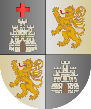 lo mismo, y 2º, en campo de gules, un castillo de oro, por cuya puerta