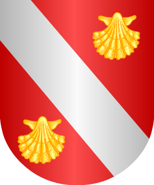 tienen: En campo de plata, una banda jaquelada, de gules y oro, en dos órdenes,